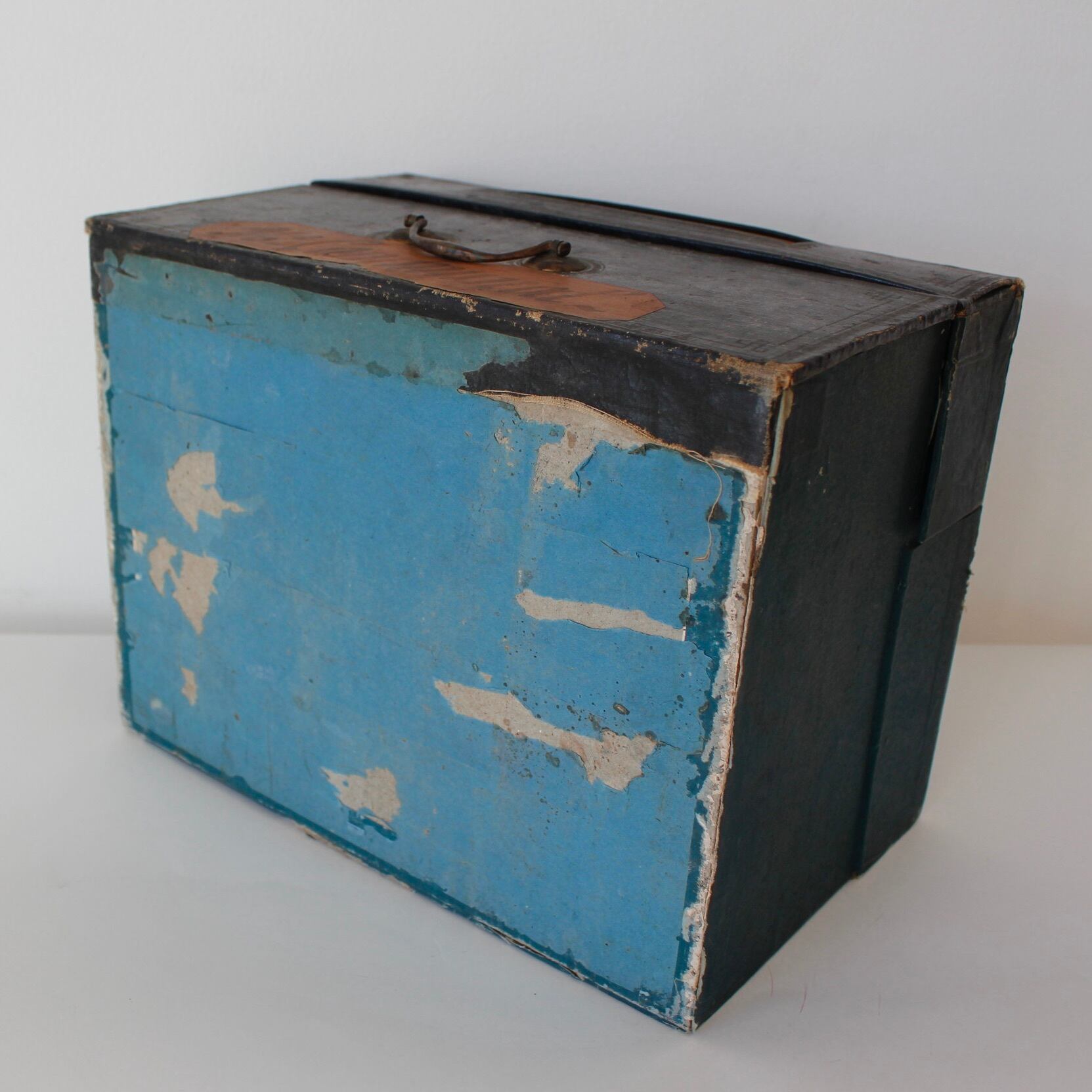 パリのアンティークショップで見つけた、しっとり落ち着いた暗いブルーグリーンのフランスアンティークの大きな薬箱。