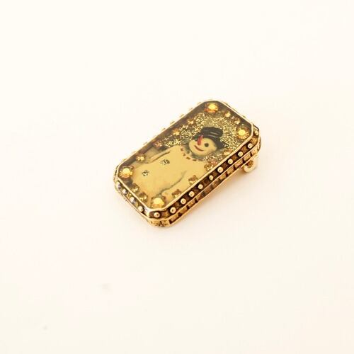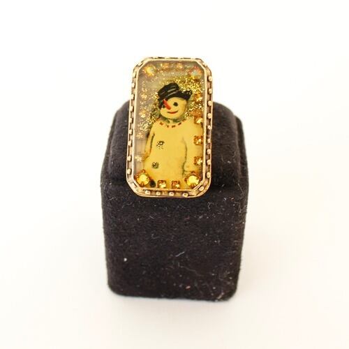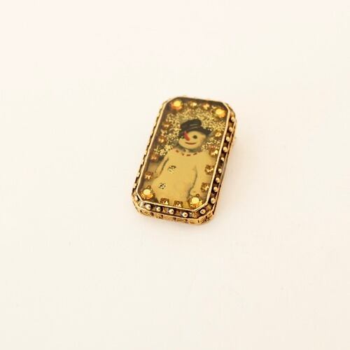 スノーマンが描かれたアンティークゴールドカラーのスクエアモチーフは、